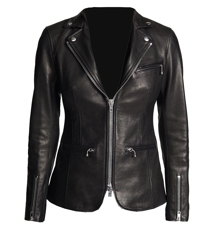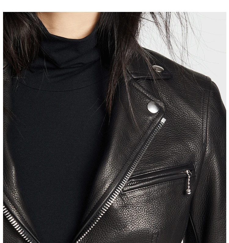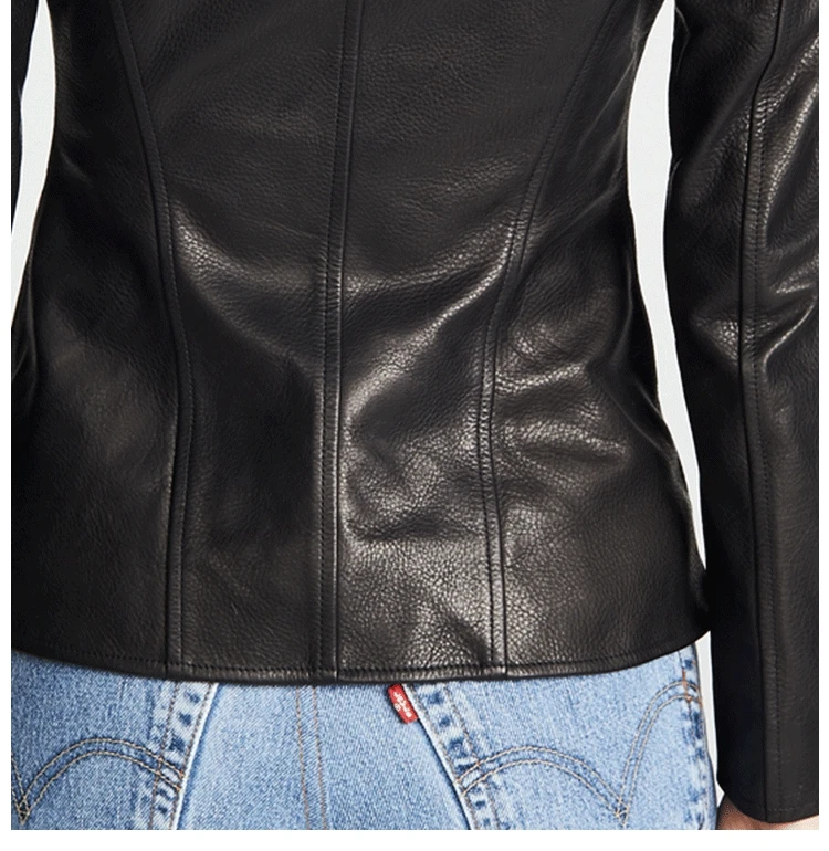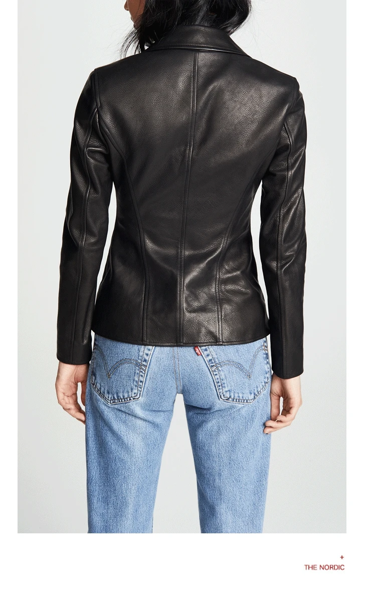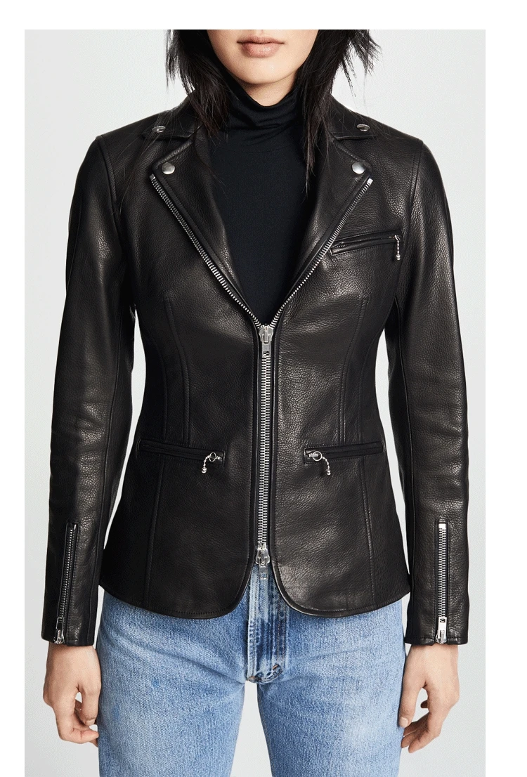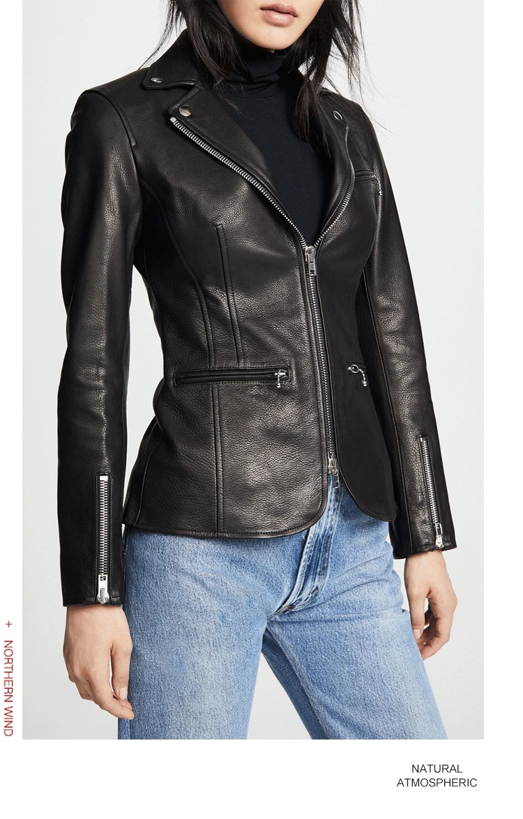 Black sheepskin genuine leather jacket women coat motorcycle clothing Turn-down Collar female sexy slim OL office zipper Jackets